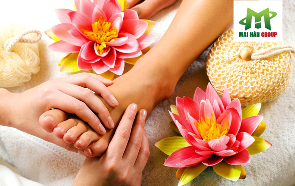 Quy trình: Ngâm chân nước ấm thảo mộc (gừng, muối Himalaya, sả) 10–15 phút để thư giãn cơ và mềm da. Tẩy da chết vùng gót và lòng bàn chân. Bấm huyệt phản xạ toàn bộ lòng bàn chân theo sơ đồ cơ thể. Massage bắp chân, mắt cá và kéo giãn các ngón chân. Kết thúc bằng dưỡng ẩm chuyên sâu và quấn khăn ấm.