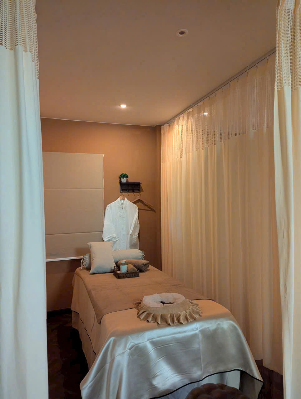 Không gian của chúng tôi được thiết kế để tách biệt hoàn toàn khỏi sự ồn ào bên ngoài. Ánh sáng dịu, hương thơm tinh dầu tự nhiên, âm thanh nhẹ nhàng — tất cả được chọn lọc kỹ lưỡng để đưa bạn vào trạng thái thư giãn sâu ngay từ bước chân đầu tiên.